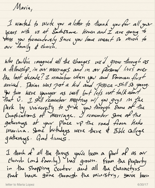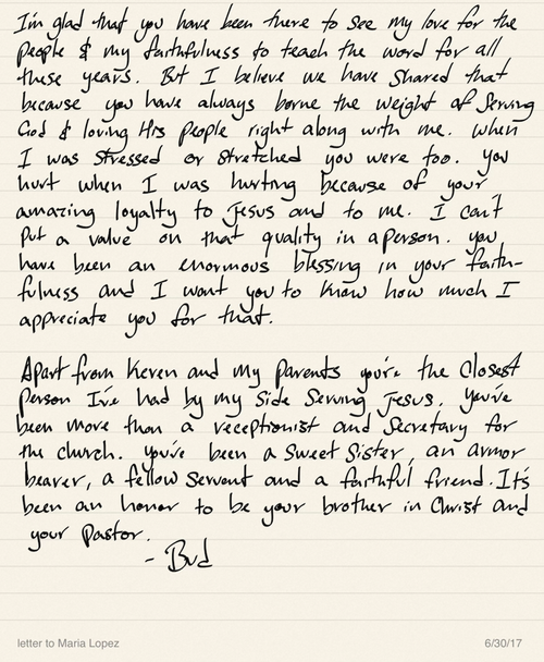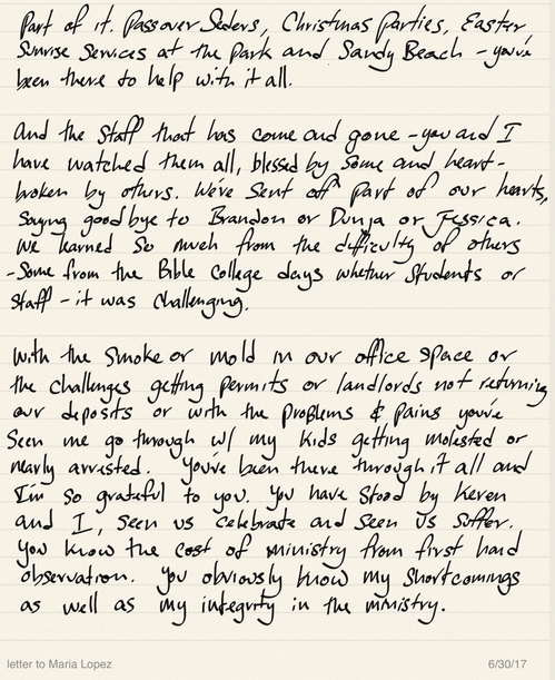 Then, looking through some notes I found an old letter I wrote to my former receptionist, Maria, when she was moving on from our ministry in 2017. Reading it moved me to tears as I recalled our work together in the Lord. I was glad to send her away loved, blessed, and with the knowledge that her ministry was so valuable. Her reward is still secure and awaiting her in heaven.
